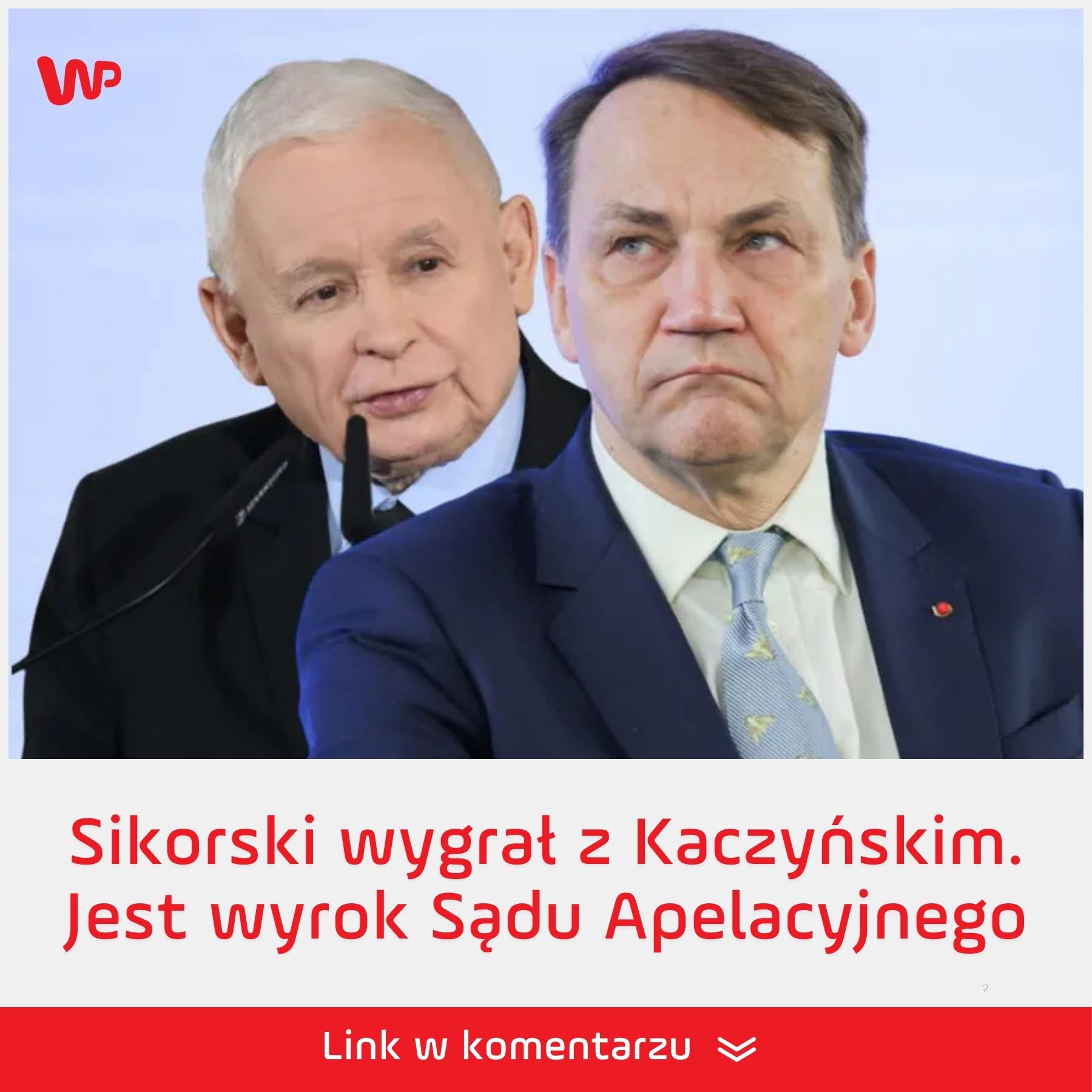 🔴 “Sąd Apelacyjny oddalił powództwo J. Kaczyńskiego o ochronę dóbr osobistych i prawomocnie uznał, że moja opinia o tym, iż ‘Lech Kaczyński walnie przyczynił się do katastrofy smoleńskiej’ była elementem uprawnionej oceny prezydentury zmarłego Prezydenta RP Lecha Kaczyńskiego” – poinformował na swoim profilu na platformie X wicepremier, szef MSZ Radosław Sikorski