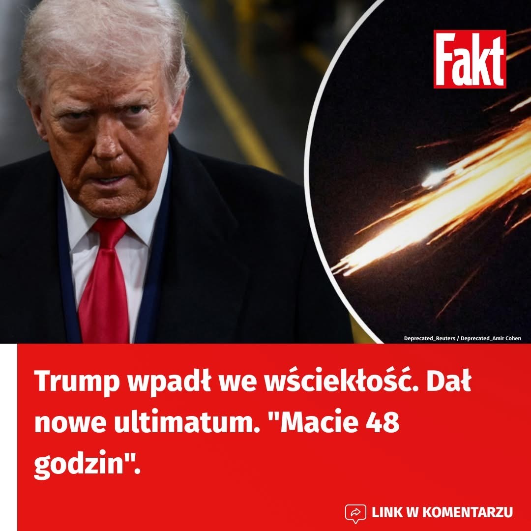 “Jeśli Iran nie OTWORZY CAŁKOWICIE, BEZ ŻADNYCH GRÓŹB, cieśniny Ormuz w ciągu 48 GODZIN od dokładnie tej chwili, Stany Zjednoczone Ameryki zniszczą jego różne ELEKTROWNIE, ZACZYNAJĄC OD NAJWIĘKSZEJ!” — napisał Trump na swoim portalu Truth Social. Z jego wpisu wynika, że jego czas ultimatum upłynie w tuż przed 1 w nocy czasu polskiego z 23 na 24 marca.