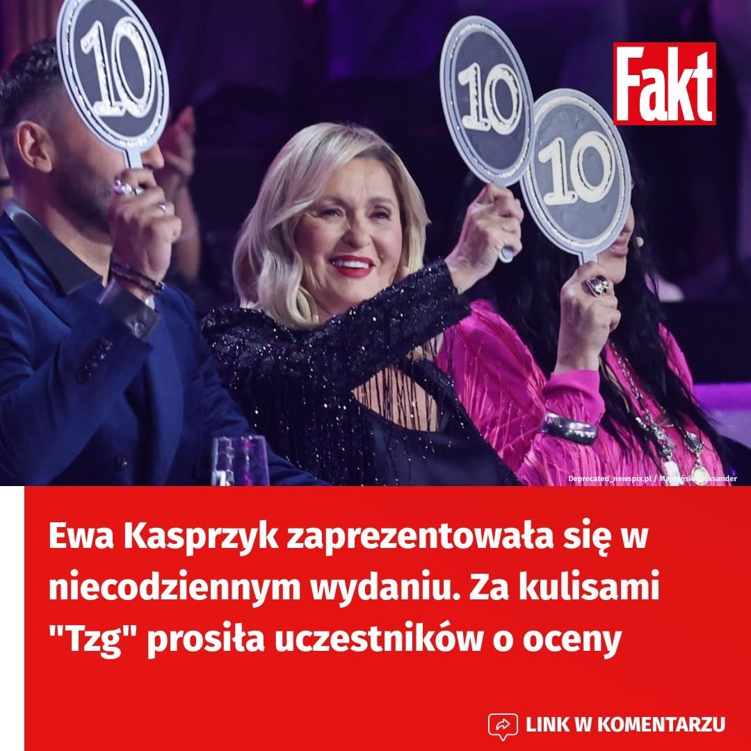 Jednak zanim kamery ruszyły na dobre, w kulisach działo się równie dużo. Ewa Kasprzyk postanowiła pokazać fanom fragment atmosfery panującej za sceną i opublikowała na swoim Instagramie humorystyczne nagranie. Aktorka pojawiła się na nim w niecodziennym wydaniu — w sportowym dresie — i z mikrofonem w ręku ruszyła między garderobami, by zapytać uczestników, co sądzą o jej stylizacji.