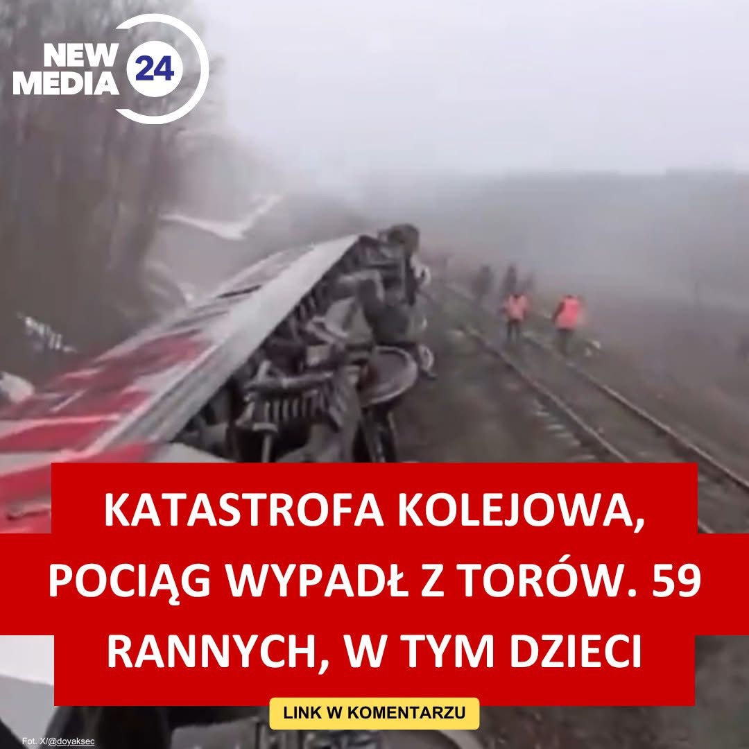 Katastrofa kolejowa, pociąg wypadł z torów. 59 rannych, w tym dzieci