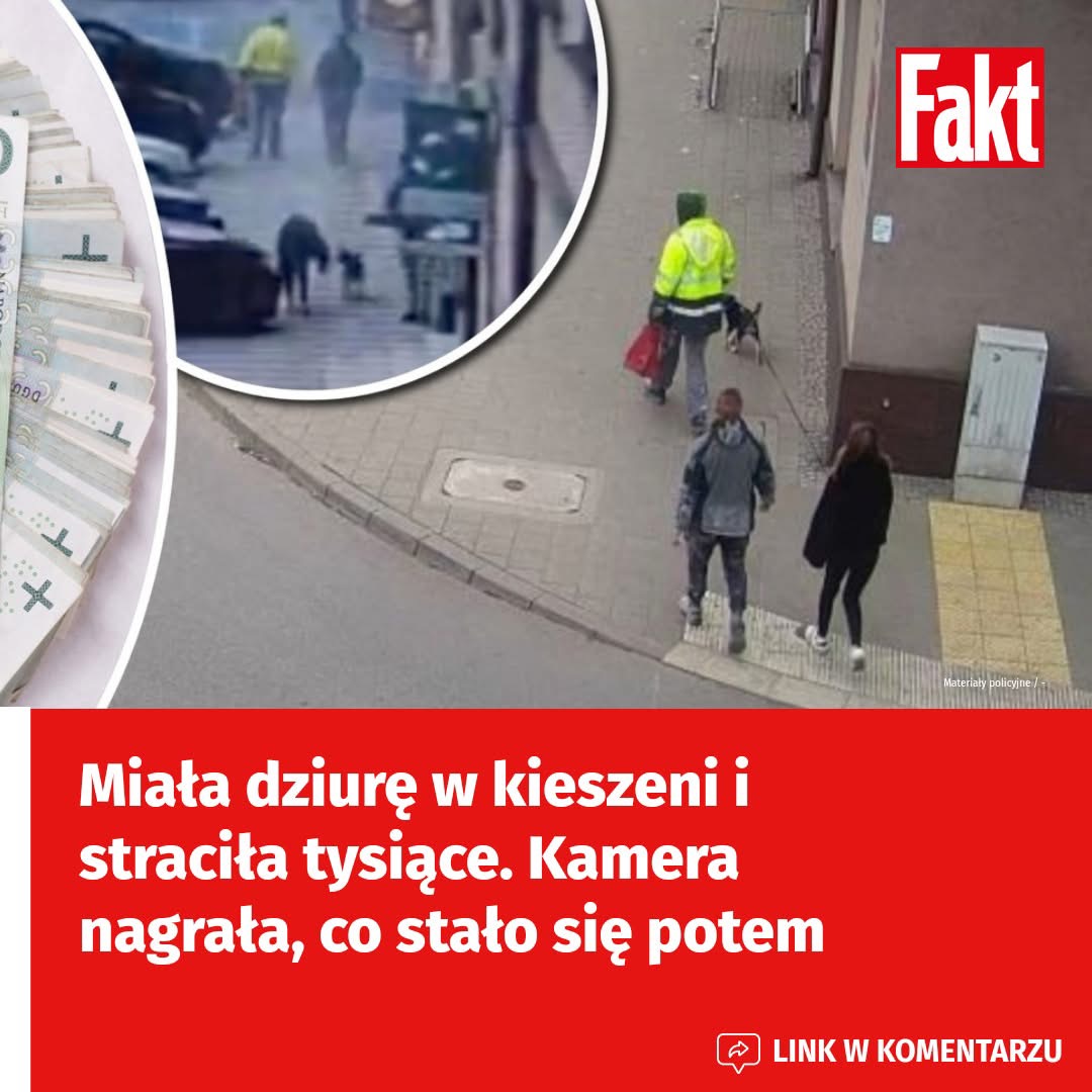 Szła spokojnie chodnikiem i nie miała pojęcia, że z kieszeni osuwają się jej tysiące złotych. 47-latka z Pabianic (woj. łódzkie) straciła pieniądze przez dziurę w kurtce. Zanim się zorientowała, rozsypane banknoty zauważyli przechodnie. Zamiast pomóc, zaczęli zbierać je dla siebie. — Oni nie znaleźli “niczyich” pieniędzy. Z nagrania widać, że wiedzieli, do kogo należą — mówią “Faktowi” policjanci.
