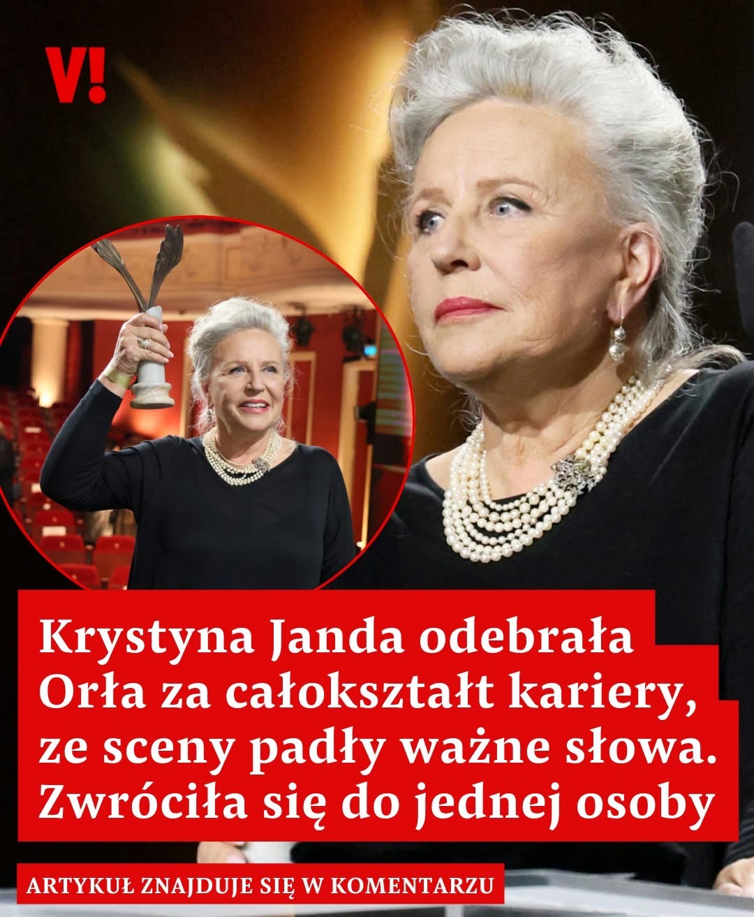 Wzruszenie, cisza i słowa, które poruszyły całą salę. Podczas gali Orłów w Teatrze Polskim w Warszawie Krystyna Janda odebrała najważniejsze wyróżnienie w polskim kinie. Jednak to nie sama statuetka stała się najgłośniejszym momentem wieczoru. Aktorka ze sceny zwróciła się do osoby, bez której, jak przyznała, jej kariera mogłaby nigdy się nie wydarzyć.