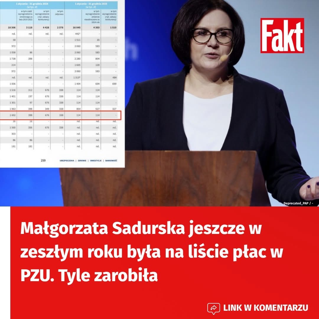 Małgorzata Sadurska jeszcze w 2025 r. otrzymała wynagrodzenie z PZU. Tyle zarobiła w spółce ubezpieczeniowej. 1