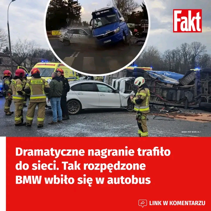 Nagranie z podwarszawskich Marek pokazuje dramatyczne skutki zderzenia BMW z autobusem. Siła uderzenia była ogromna, a pasażerowie ucierpieli.