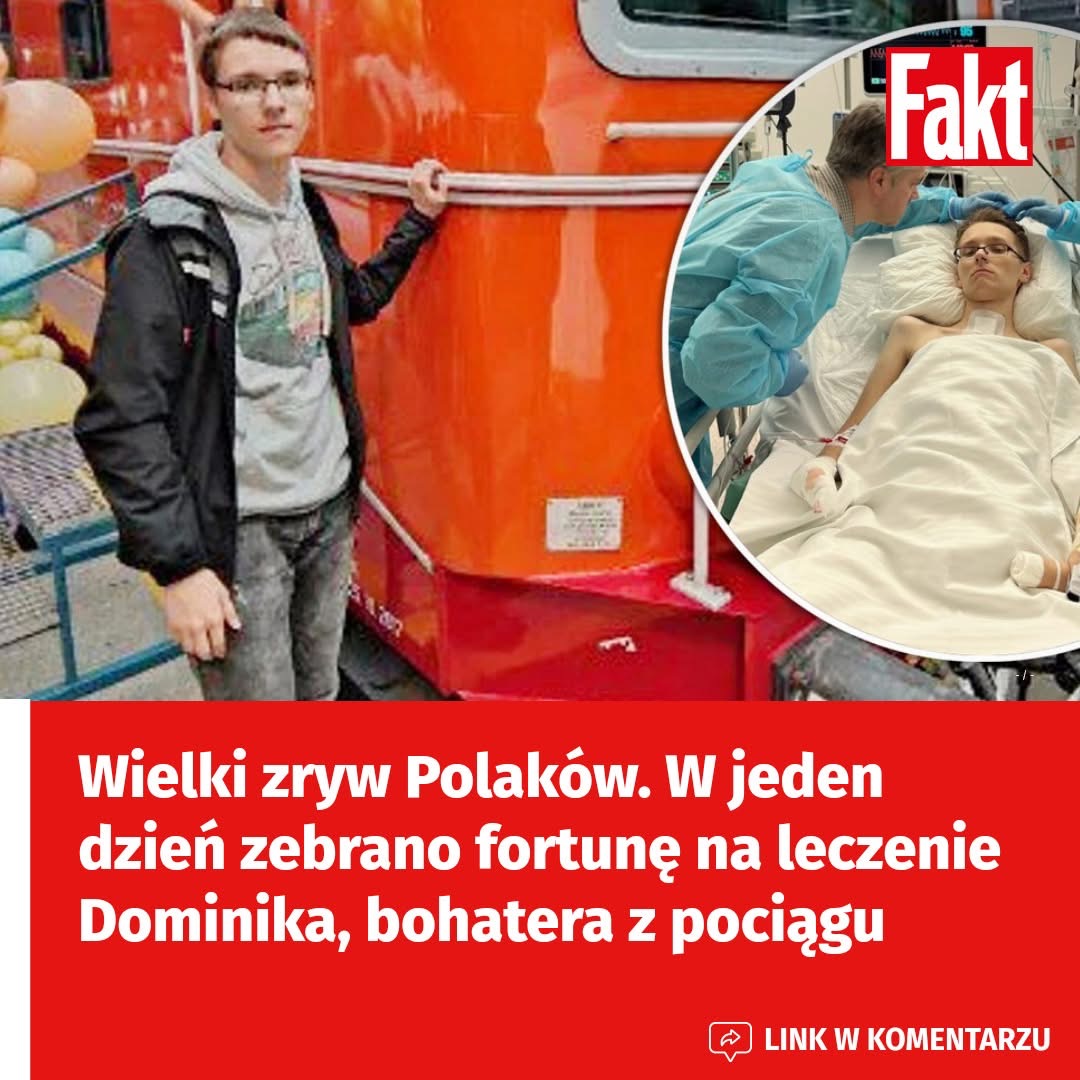 Niesamowita mobilizacja Polaków! W ciągu jednego dnia zebrano ogromną sumę na pomoc dla Dominika, który stracił nogi, ratując pasażerkę.
