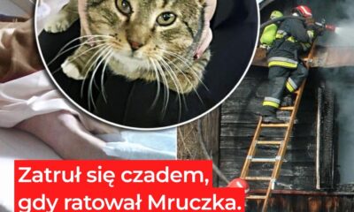 Nie myślał o sobie, by jak najszybciej opuścić palące się pomieszczenia. Wrócił po swojego kota, który przeraźliwie miauczał, bo zaklinował się za regałem 🥺 Gdy drewniak...