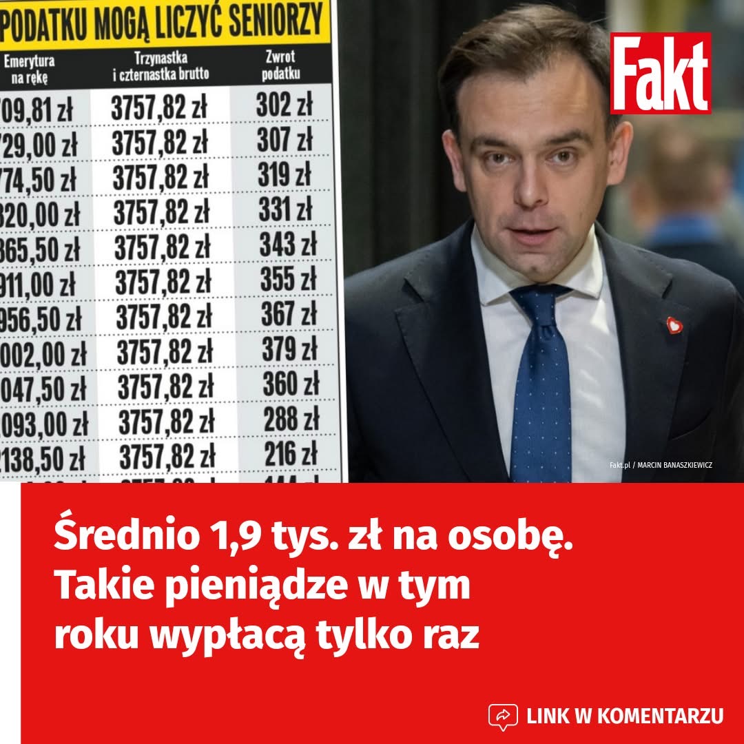 Średnio 1,9 tys. zł na osobę. Takie pieniądze w tym roku wypłacą tylko raz