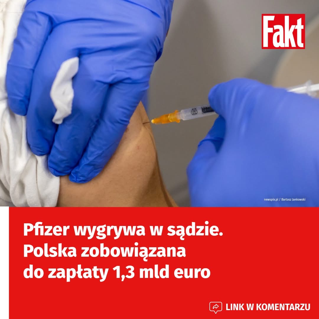 Jak podaje agencja AFP, brukselski trybunał nakazał Polsce i Rumunii zapłacenie zaległych należności firmie Pfizer/BioNTech za nieopłacone szczepionki przeciw COVID-19 — Polska ma uregulować 1,3 mld euro, Rumunia — 600 mln euro.