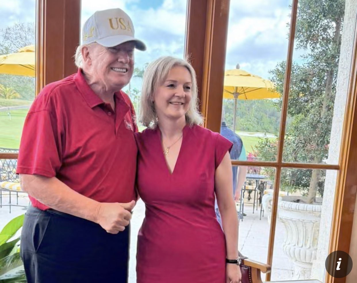 Britain’s shortest-serving prime minister tweeted a photo on Sunday showing her in the company of the US president at his Mar-a-Lago club in Florida.