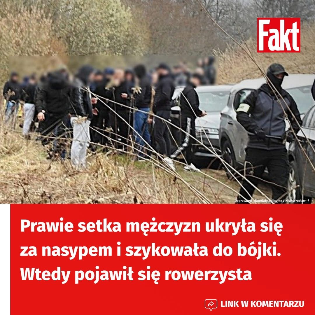 Morsowanie, grzyby… — Tak się tłumaczyli, gdy policja przerwała ich “spotkanie”. Prawie 100 mężczyzn czatowało za nasypem pod Wrocławiem. Mieli kominiarki i sprzęt do walki. Rozgrzewali się do wielkiej bójki, ale plan “ustawki” rozsypał się w kilka minut. A wszystko przez jednego rowerzystę.