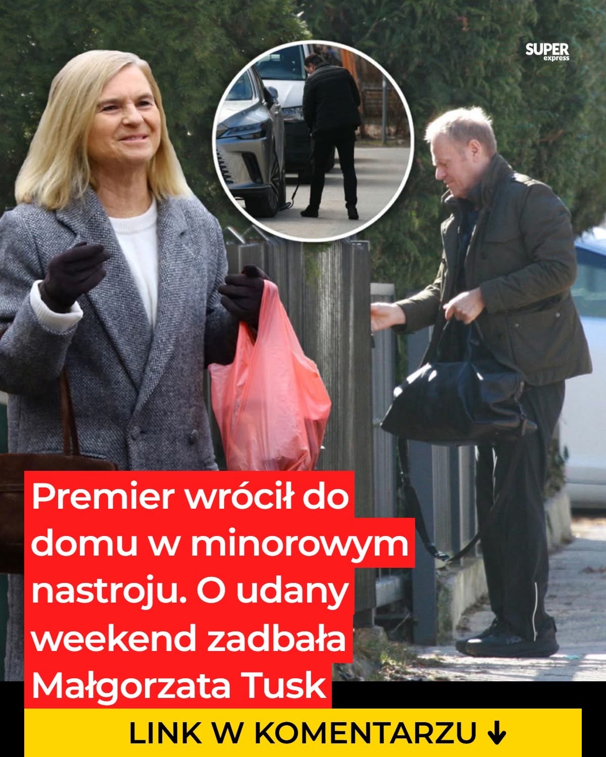 Premier przyjechał w sobotę pod dom limuzyną. Zaparkowane w pobliżu jego domu auta zostały dokładnie sprawdzone lusterkiem przez funkcjonariuszy SOP. Widać było, że Donald Tusk nie jest w najlepszym humorze, a ubrany był częściowo sportowo. Szef rządu ma obecnie wiele na głowie, m.in. konieczność wdrożenia programu SAFE mimo braku ustawy — po tym, jak została zawetowana przez prezydenta — co wymaga szukania alternatywnych podstaw prawnych i reorganizacji harmonogramu działań administracji. Do tego dochodzą rosnące, z powodu wojny Izraela i USA z Iranem, ceny ropy i gazu, które wpływają na koszty transportu, energii i produkcji, a tym samym wywołują presję inflacyjną i niezadowolenie społeczne. W tle pojawiają się też inne wyzwania, które długo by wymieniać.