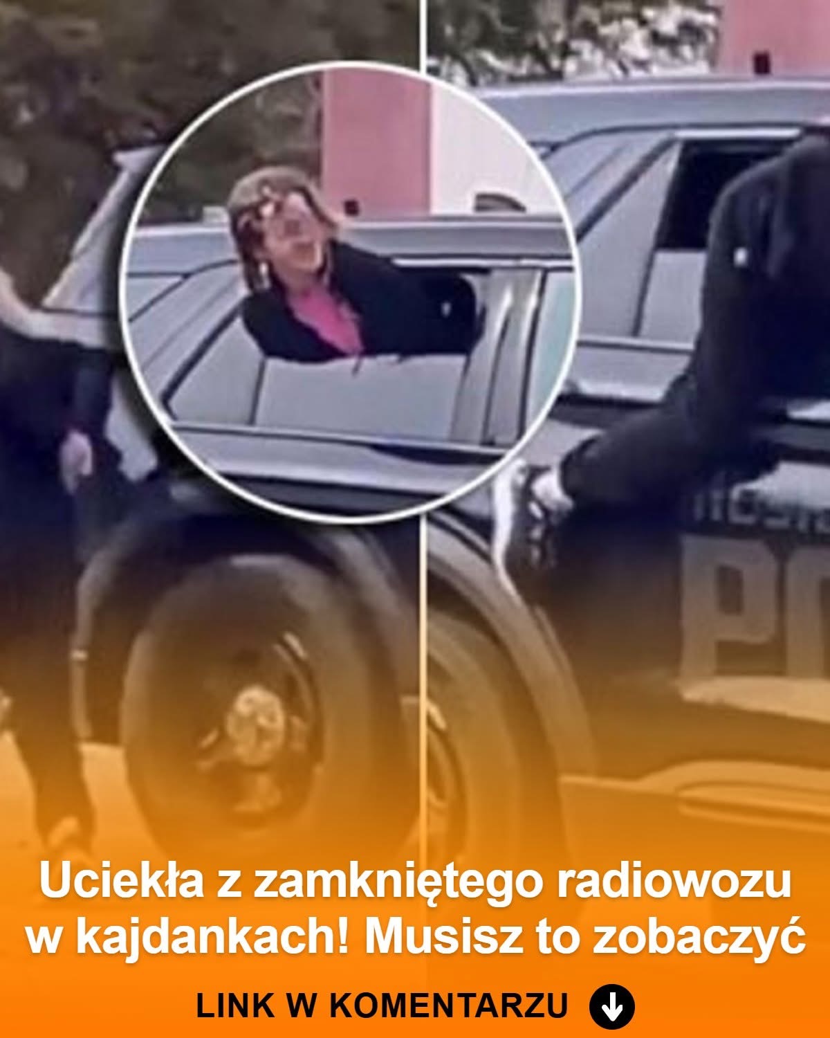 Kobieta w kajdankach uciekła z radiowozu przez okno, policjanci nie zauważyli. Ucieczka hitem internetu