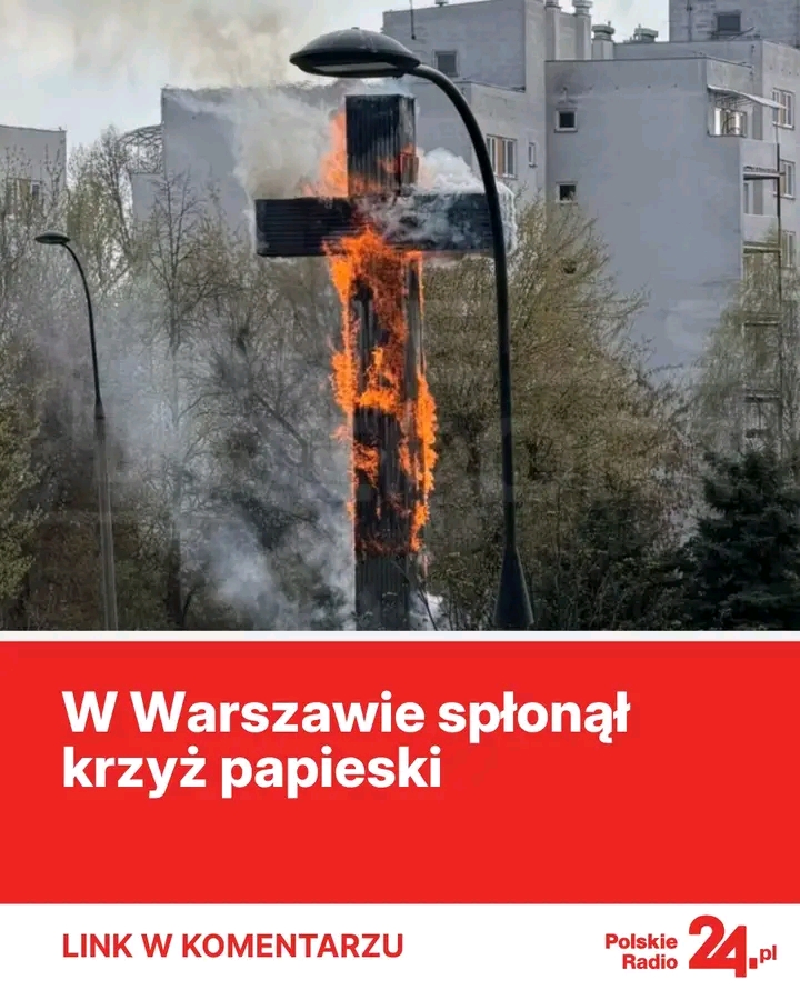 Spłonął papieski krzyż przy kościele pod wezwaniem św. Maksymiliana Kolbego przy ulicy Rzymowskiego w Warszawie. Pożar został opanowany, ale na miejscu nadal pracuje 6 zastępów straży.